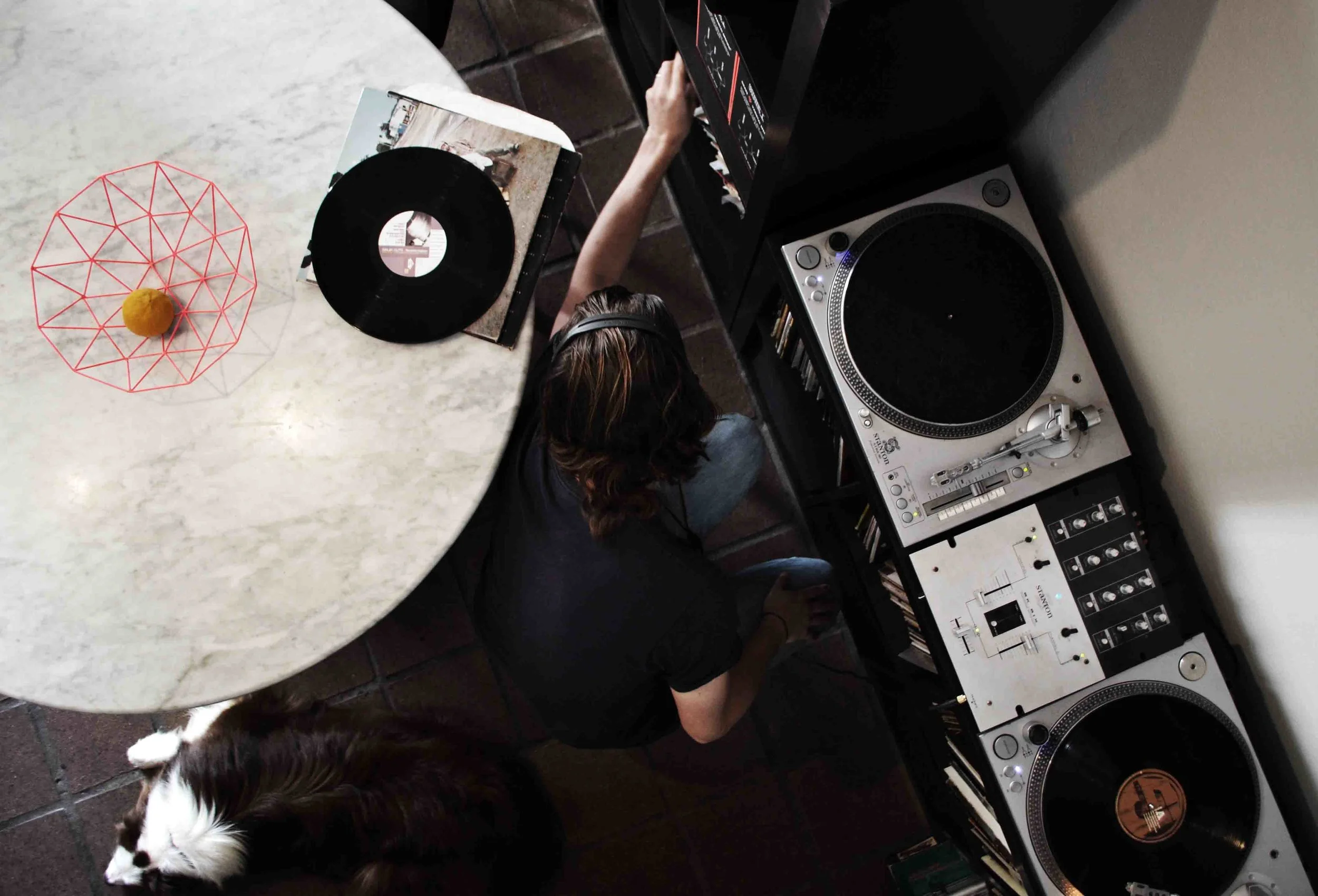 Chris runs his own Architecture Practice with a second office in Brisbane. Their welcoming home is a mashup of original Australian art & quirky finds. He owns turntables. As we get rolling with the chat, Chris brings out a couple of vinyls and spins some chilled Friday beats. Here’s a peek inside..